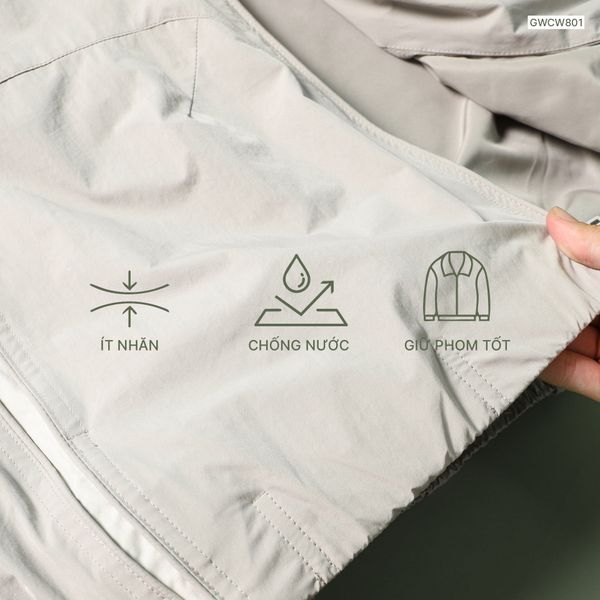 Áo khoác gió 2 lớp can phối mũ liền logo thêu GWCW801