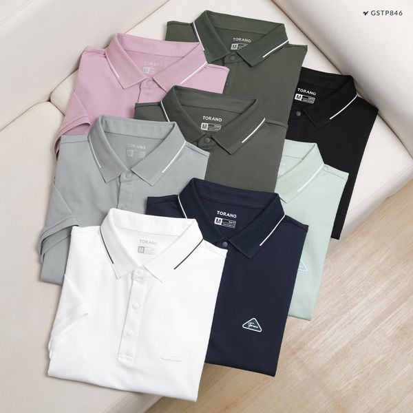 Áo polo trơn kẻ in logo ngực GSTP846