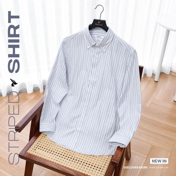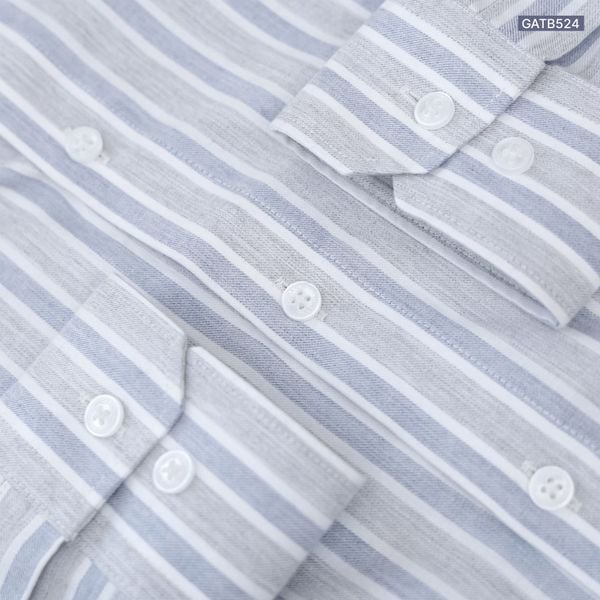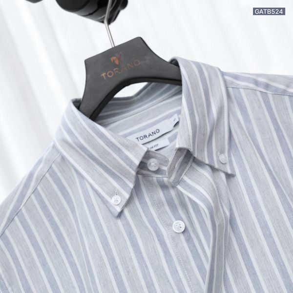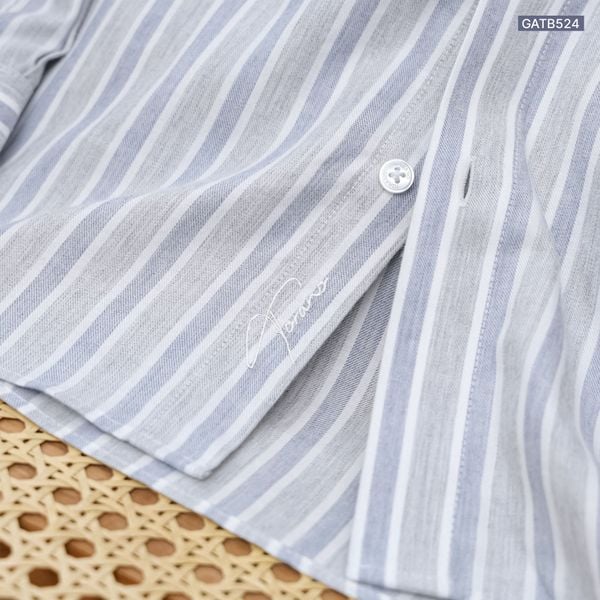 Sơ mi dài tay kẻ dọc premium thêu chữ ký ở nẹp cúc GATB524