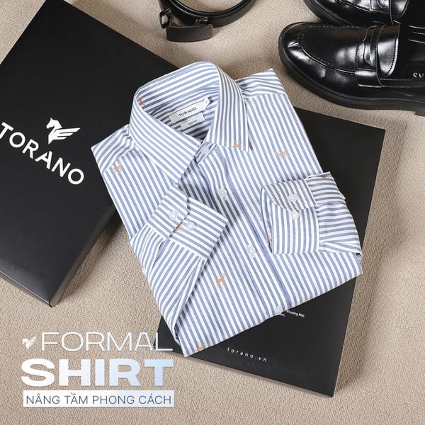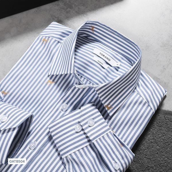 Sơ mi dài tay kẻ họa tiết premium thêu logo ở thép tay GATB504